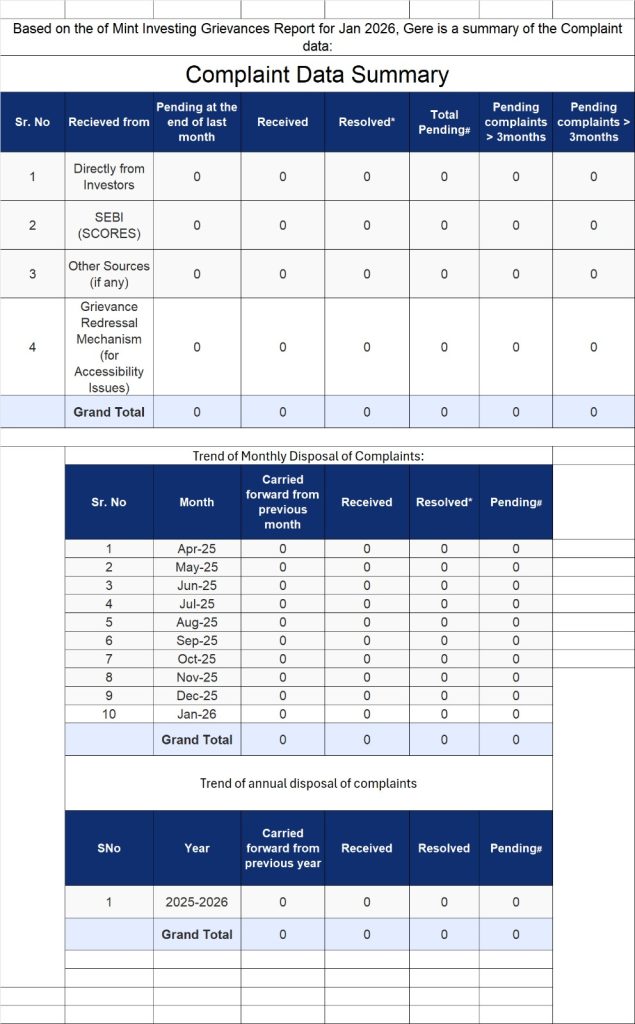Complaint Data in terms of SEBI Circular SEBI/HO/IMD/IMD-II CIS/P/CIR/2021/0685 dated December 13, 2021 and Grievance Redressal Mechanism – Accessibility Compliance (SEBI Circular dated July 31, 2025)